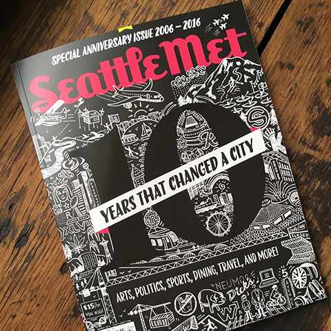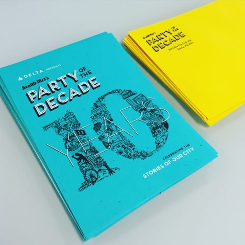 Event collateral for Seattle Met Magazine's 10th anniversary party