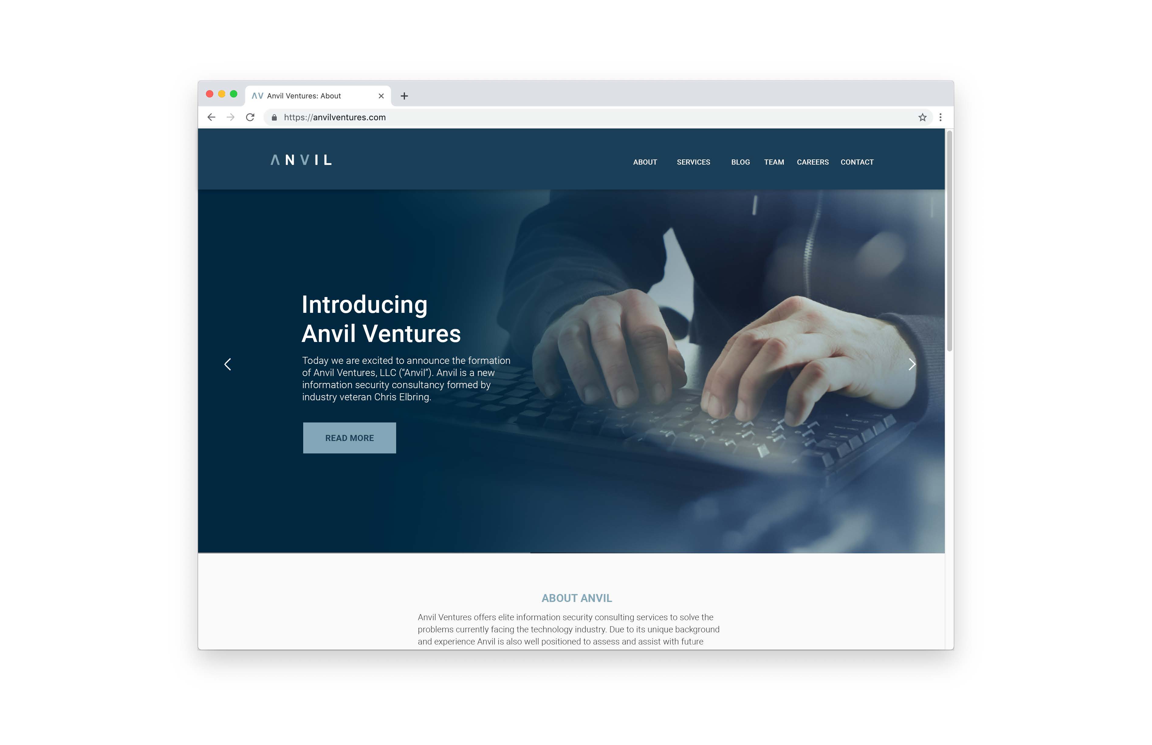 Anvil Ventures provides bespoke information security consulting services. They merge highly technical expertise with a commitment to quality. They were looking to update their brand to help separate themselves from the increasingly crowded field of cybersecurity services. I worked with their executive team to create a new visual identity including a logo and brand guidelines as well as direction on how to apply their new brand to existing collateral.